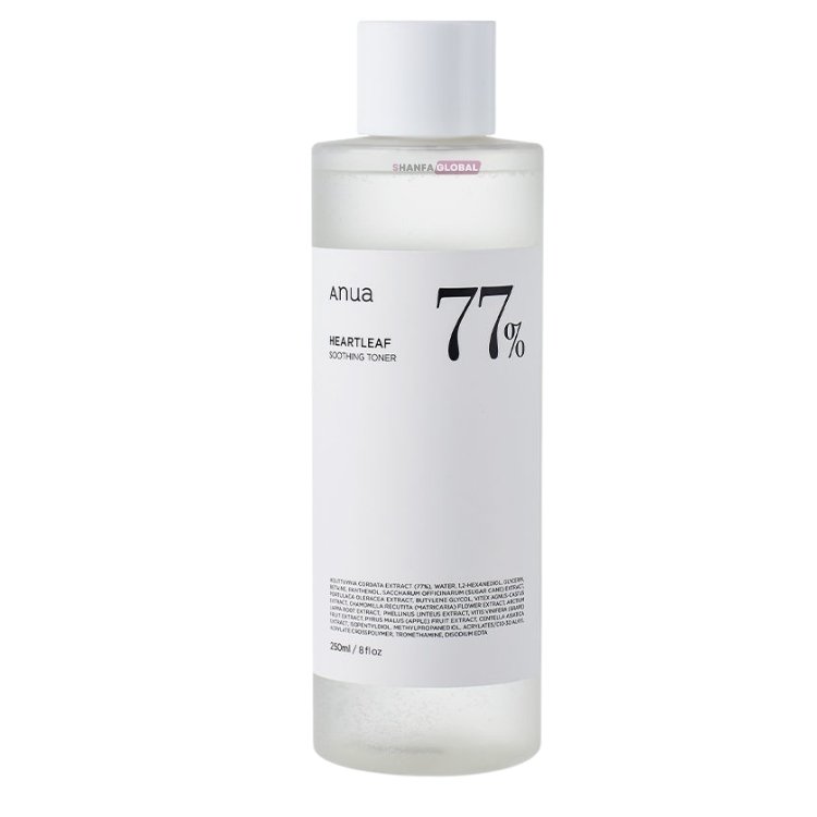 The ANUA Heartleaf 77% Soothing Toner is a calming and hydrating toner that provides relief for irritated or sensitive skin. Formulated with 77% Heartleaf (Houttuynia Cordata) Extract, this toner is designed to soothe inflammation, reduce redness, and restore balance to the skin. It also contains hydrating ingredients to moisturize the skin, leaving it refreshed, soft, and smooth. This toner is perfect for those with sensitive or acne-prone skin, helping to calm and strengthen the skin barrier while preparing the skin for subsequent skincare steps.